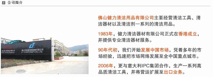 佛山健力清潔用品有限公司公司于1983在香港成立,初時(shí)主要業(yè)務(wù)是提供清潔機(jī)械之維修保養(yǎng)及清潔技術(shù)顧問,并兼營機(jī)械銷售,后憑著多年累積之市場及維修保養(yǎng)經(jīng)驗(yàn),直接引進(jìn)歐美各地之專業(yè)產(chǎn)品及技術(shù),而配套成為深受用戶們信賴之健力清潔用品系列。 健力用品供應(yīng)有限公司于1991年展開在中國國內(nèi)之業(yè)務(wù),總部設(shè)于廣東佛山市,而分銷網(wǎng)絡(luò)已遍及各省主要城市。佛山總部除陳列室外,并設(shè)有倉庫及維修中心,以支持各地分銷業(yè)務(wù)需要,務(wù)求能提供高質(zhì)之服務(wù)予使用客戶。
